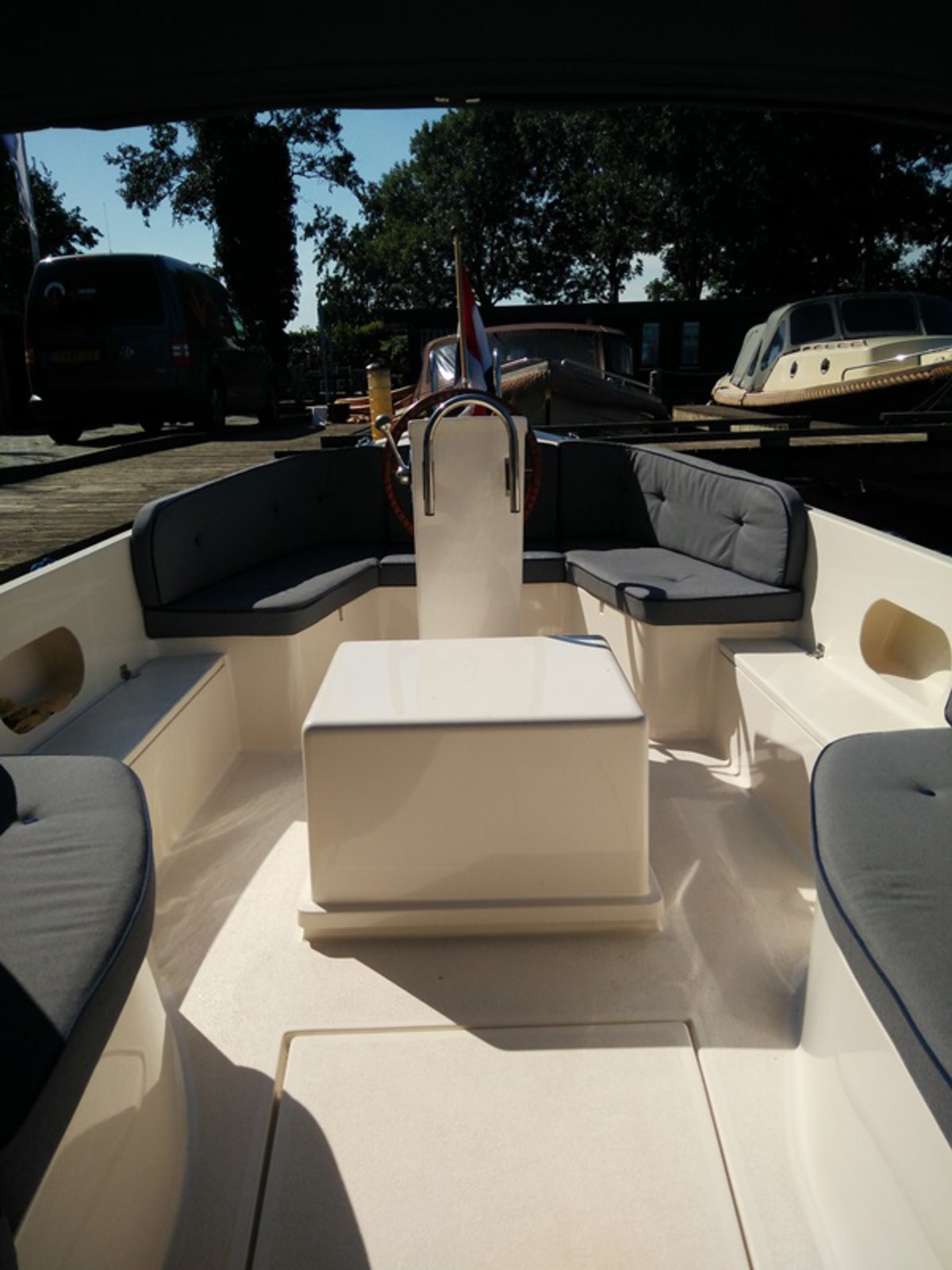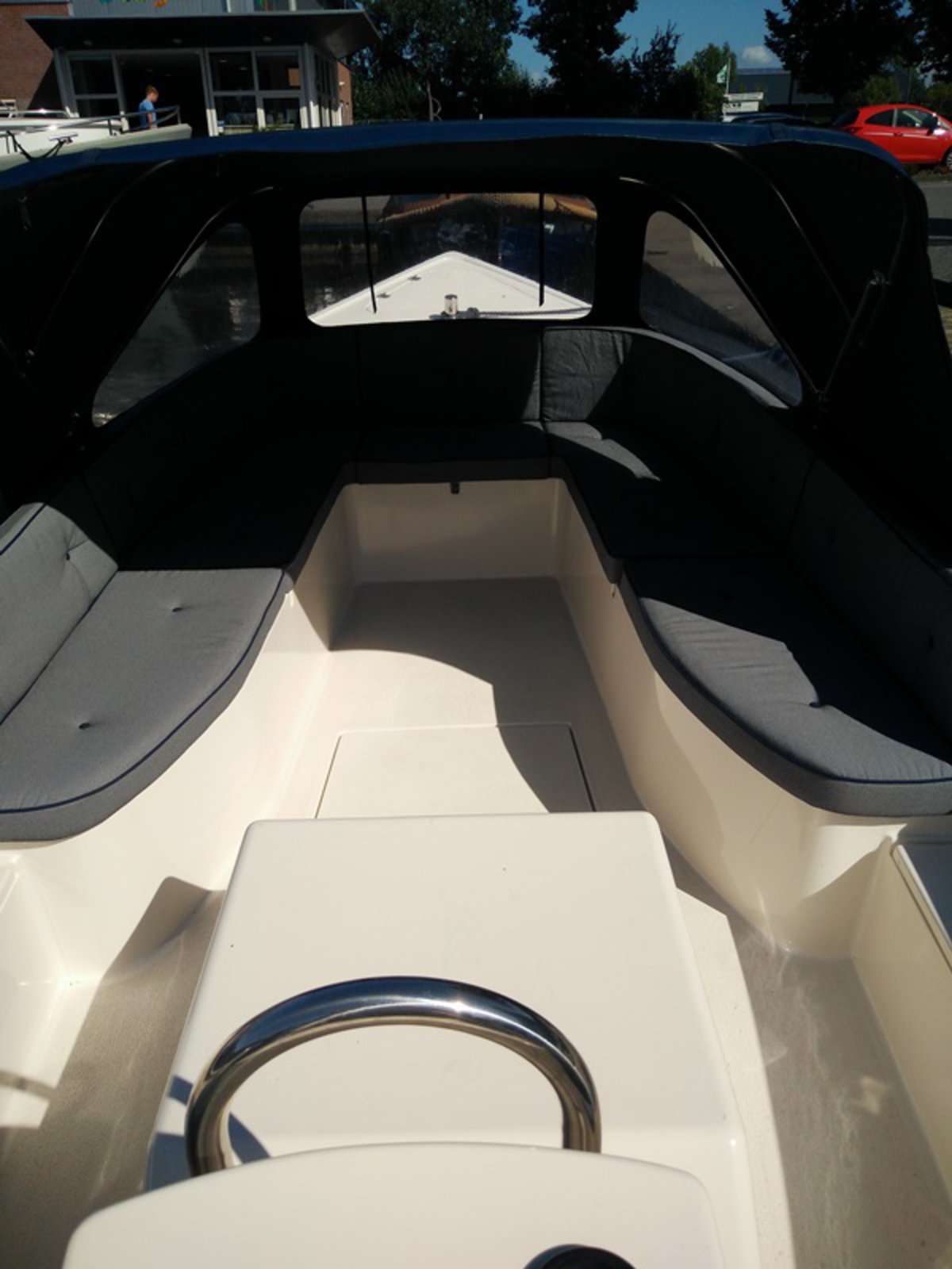 - Donker blauwe buiskap met achterzeil